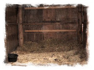 Provide clean bedding in the shelter and clean it daily. Banking older, clean shavings or straw against the sides will aid in insulation as well as help to keep the horse from being cast should he choose to lie down. Of course, a clean feed bucket is also provided in the shelter for any grain feeding.